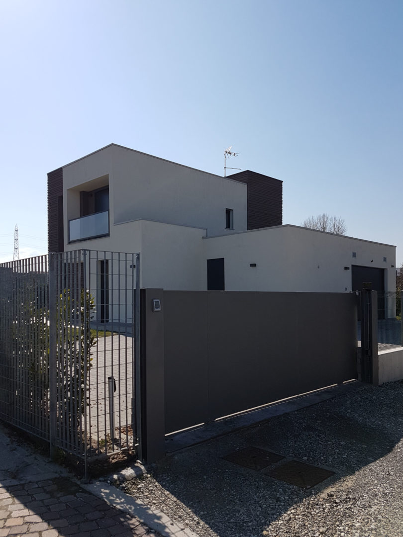 L’intervento si inserisce in un’elegante zona di espansione di Parma, caratterizzata da strade private su cui si affacciano per lo più abitazioni unifamiliari. Partendo dalla forma del lotto, dalle esigenze dei clienti e dai limiti imposti dalla normativa ha preso forma una casa creata dalla giustapposizione di volumi, con cui è stato possibile realizzare pieni, vuoti, sporti e rientranze. Tali volumi sono stati sottolineati con l’alternanza di superfici intonacate e facciavista. La vera sfida è stata poi coniugare l’estetica alla struttura in legno realizzata con pannelli xlam, a cui è stato necessario aggiungere pilastri e travi, sempre in legno, per assecondare la distribuzione non proprio regolare delle pareti.