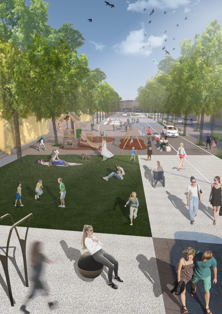 Il progetto di ridisegno dello spazio pubblico si basa su tre concetti fondamentali: IDENTITÀ, INCLUSIONE e CONNESSIONE.