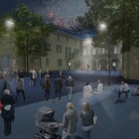 La scelta di non inserire strutture in elevazione, seppur leggere, o qualsivoglia altra schermatura all’interno della piazza, è data dalla volontà di massimizzare il senso di sicurezza. Si è cercato di non creare angoli bui, nascosti e che possano aumentare il senso di inquietudine e paura, soprattutto da un certo tipo di fruizione (bambini, anziani, donne), o favorire in qualche modo le attività illecite.