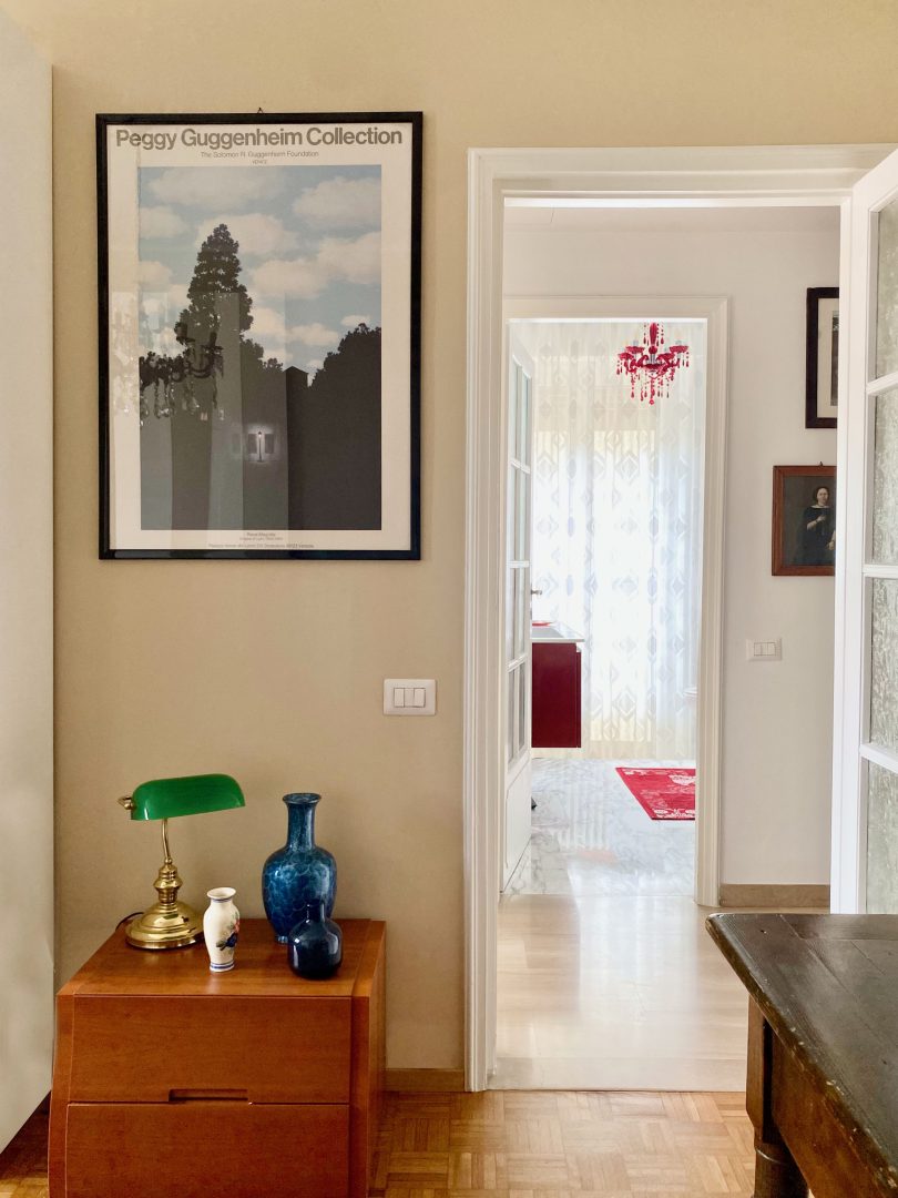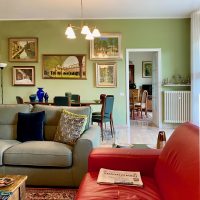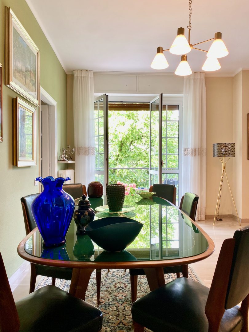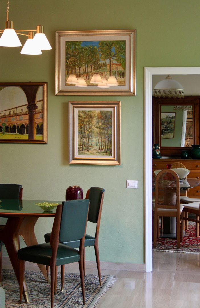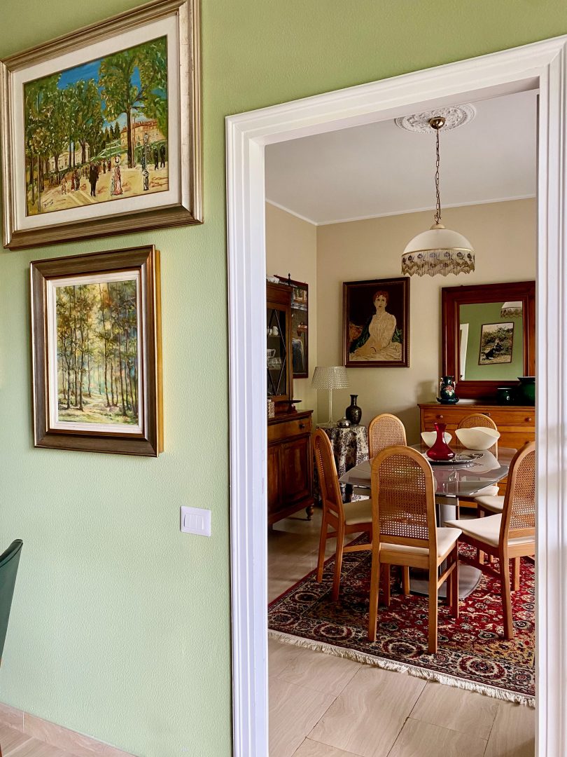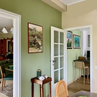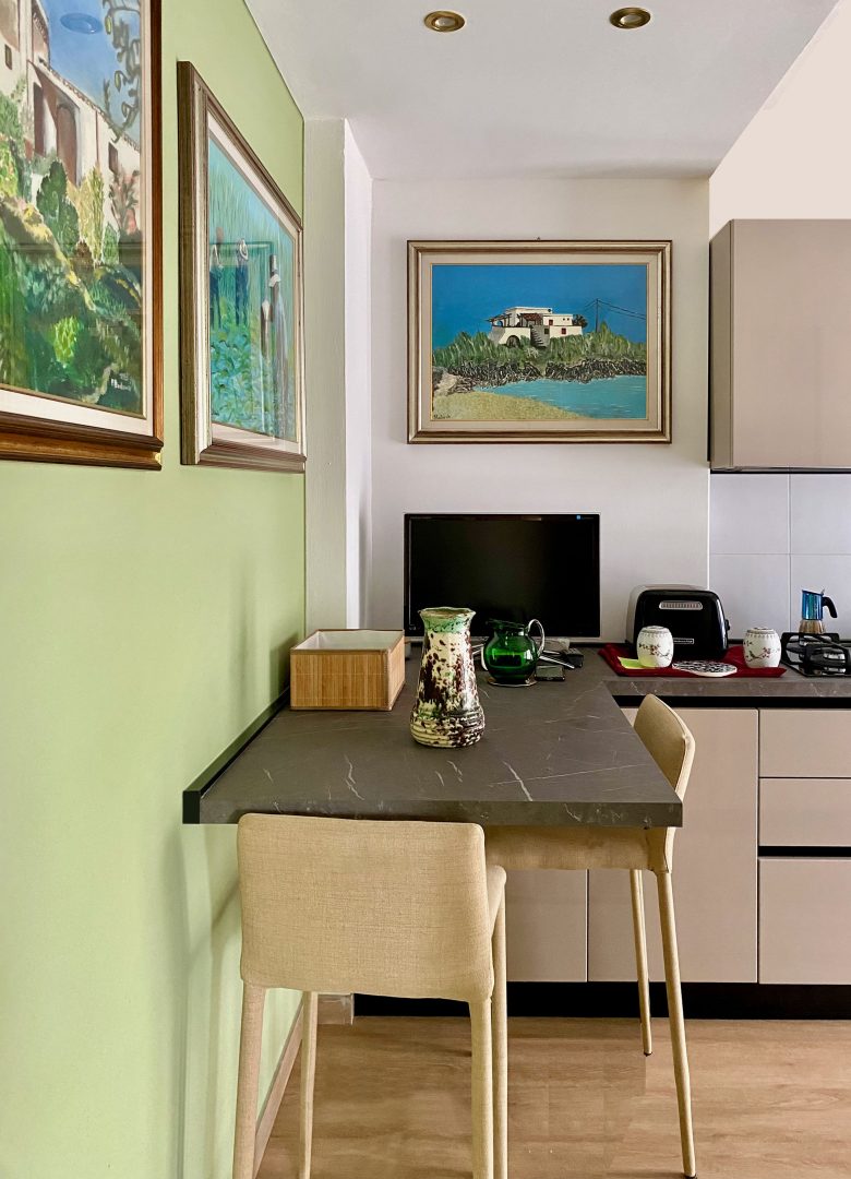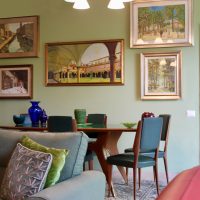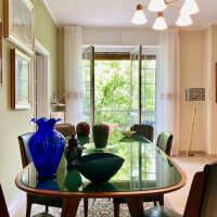 Siamo partite dagli arredi, dai complementi e dalle opere d’arte già in loro possesso, che volevano portare da due case precedenti, per studiare la loro ricollocazione e una palette cromatica vivace, in linea con il carattere dei clienti, che si armonizzasse sia con i loro oggetti che con le finiture già presenti nell’appartamento. I pavimenti sono stati levigati ed è stato inserito in cucina un spc effetto legno per coprire le due pavimentazioni presenti. Con il cartongesso sono stati realizzati dei passaggi per l’impianto di condizionamento, un ripostiglio nell’ingresso ed è stata chiusa la cucina che era passante e difficilmente arredabile. Arricchiscono l’ambiente i numerosi quadri e la colorata collezione di vasi della cliente.