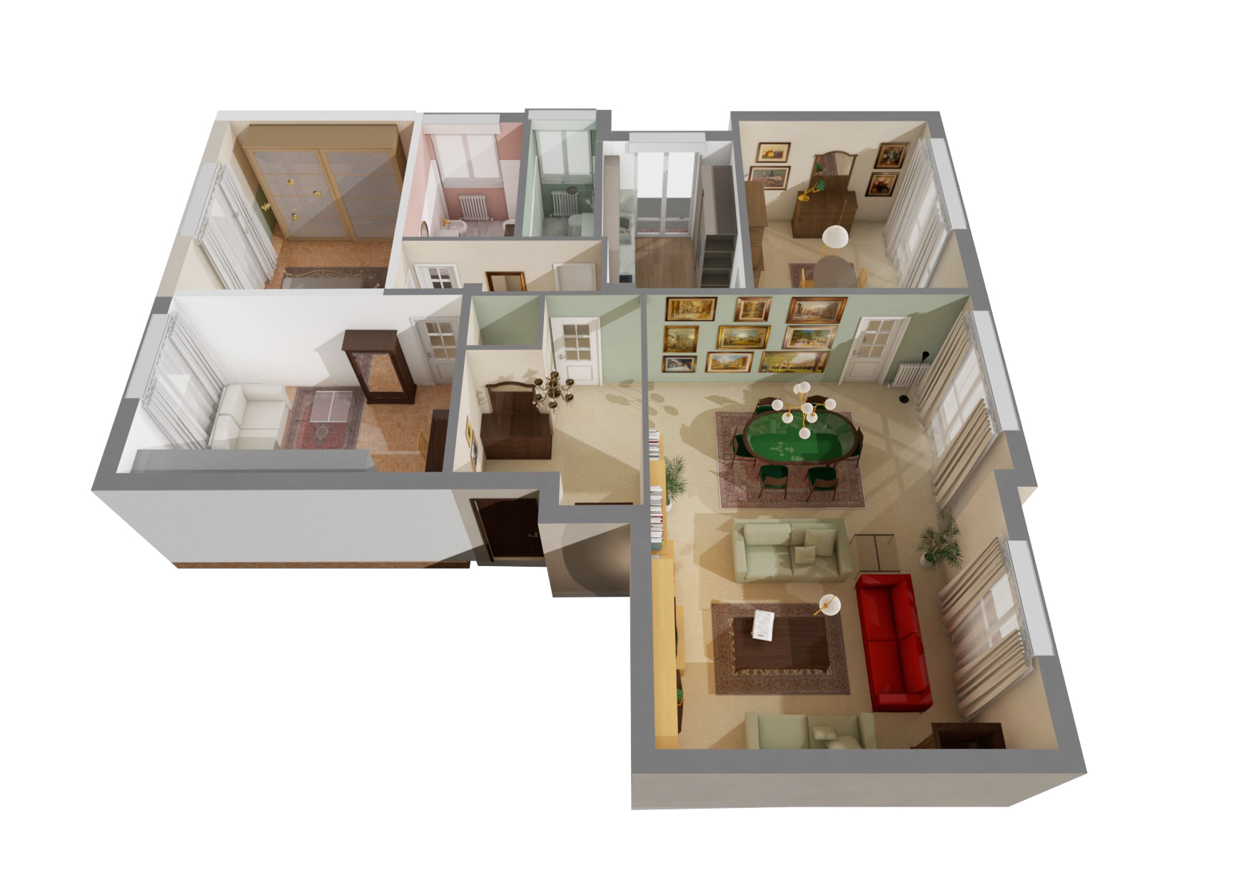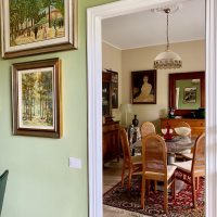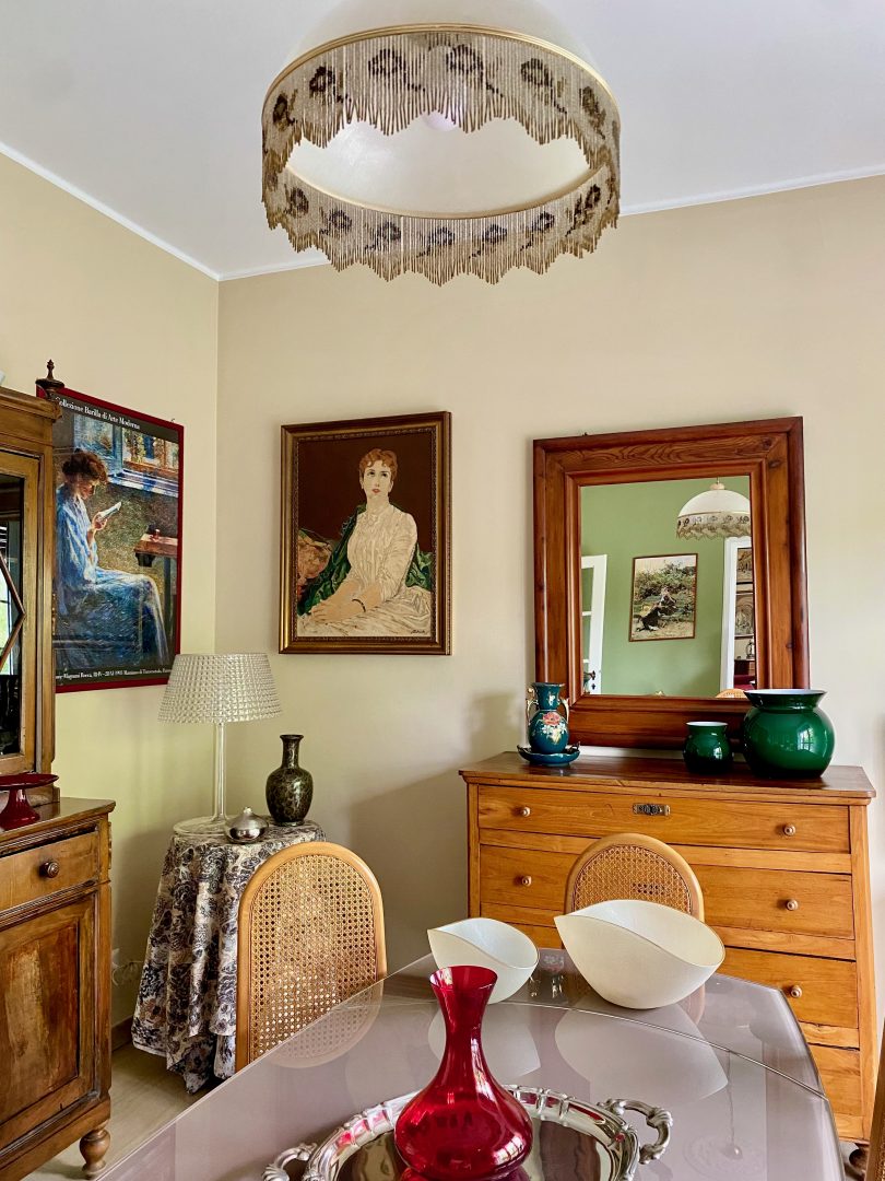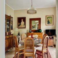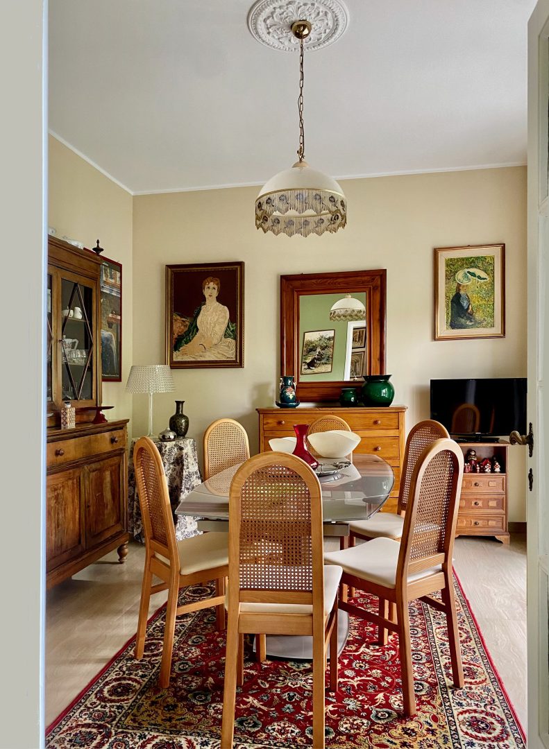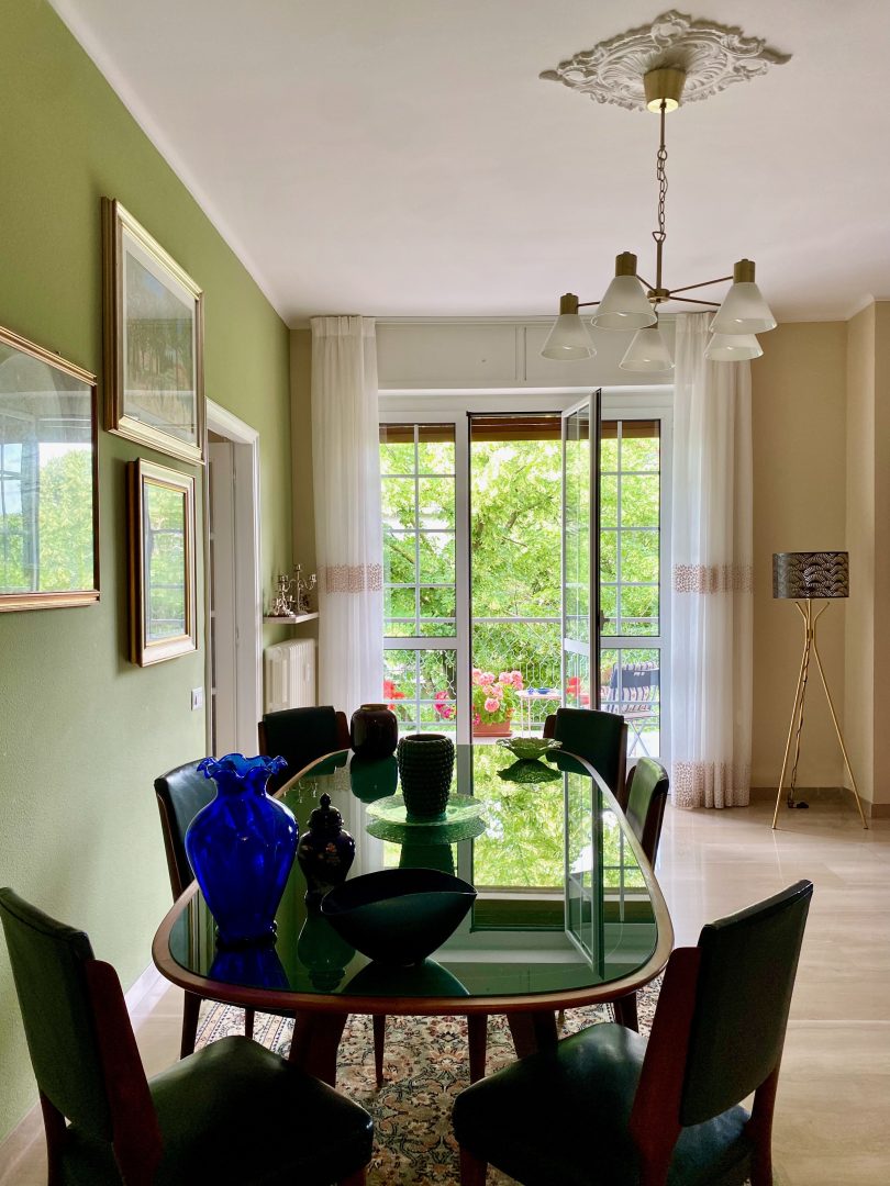Siamo partite dagli arredi, dai complementi e dalle opere d’arte già in loro possesso, che volevano portare da due case precedenti, per studiare la loro ricollocazione e una palette cromatica vivace, in linea con il carattere dei clienti, che si armonizzasse sia con i loro oggetti che con le finiture già presenti nell’appartamento. I pavimenti sono stati levigati ed è stato inserito in cucina un spc effetto legno per coprire le due pavimentazioni presenti. Con il cartongesso sono stati realizzati dei passaggi per l’impianto di condizionamento, un ripostiglio nell’ingresso ed è stata chiusa la cucina che era passante e difficilmente arredabile. Arricchiscono l’ambiente i numerosi quadri e la colorata collezione di vasi della cliente.