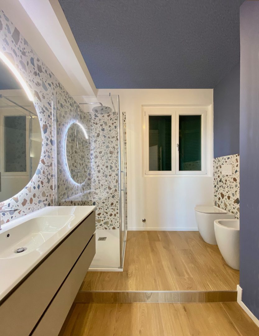 Il progetto ha previsto la ristrutturazione completa di questo appartamento di 60 mq vista mare vicino Lerici.