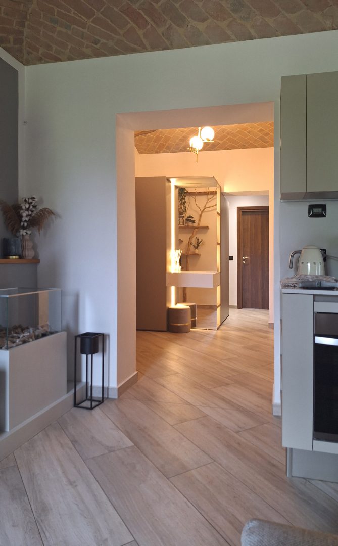 Questo piccolo intervento è stato fatto in un appartamento ricavato in una porzione di un casale nella campagna della provincia di Parma, la cui ridistribuzione funzionale ha preservato le caratteristiche architettoniche e i materiali del manufatto originario.
