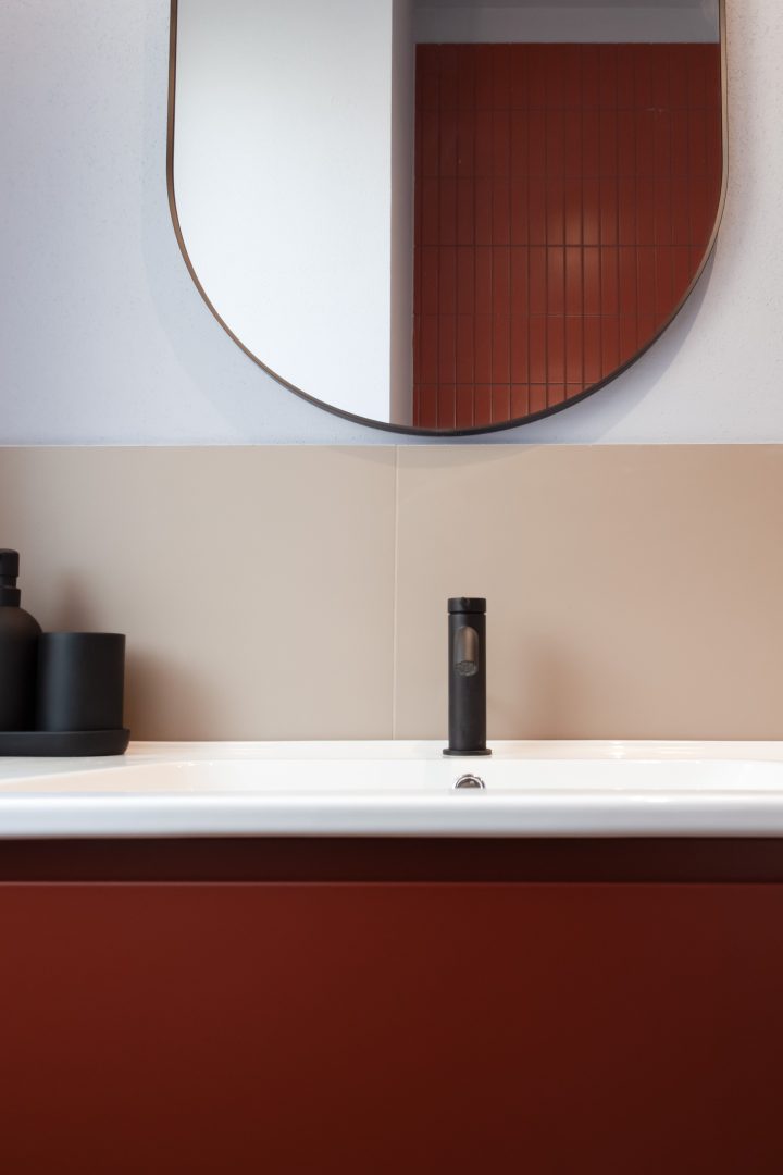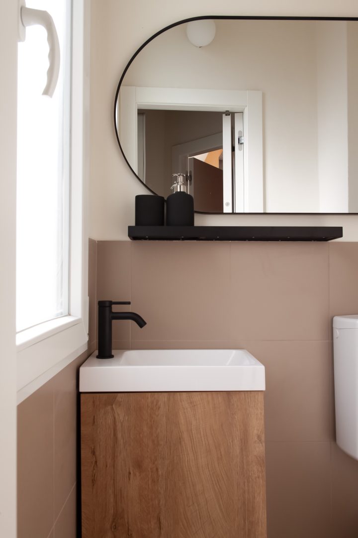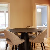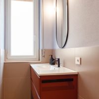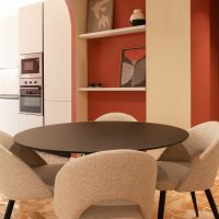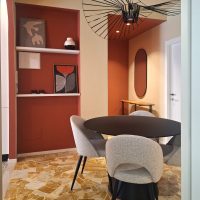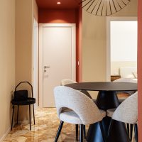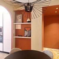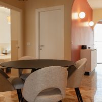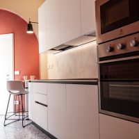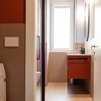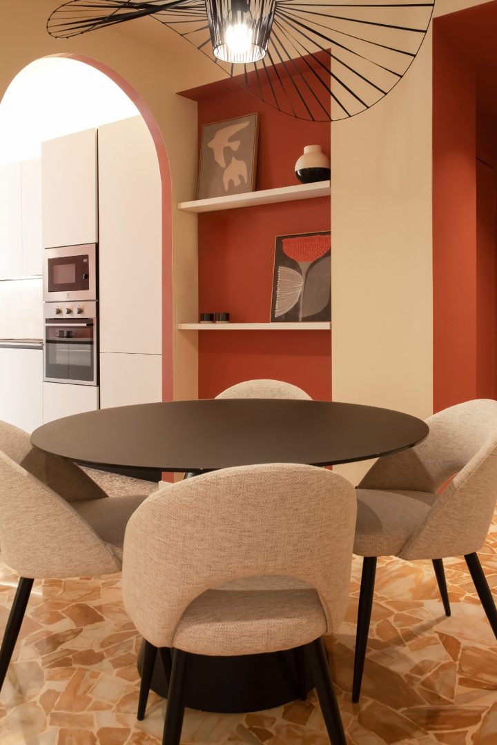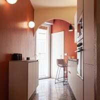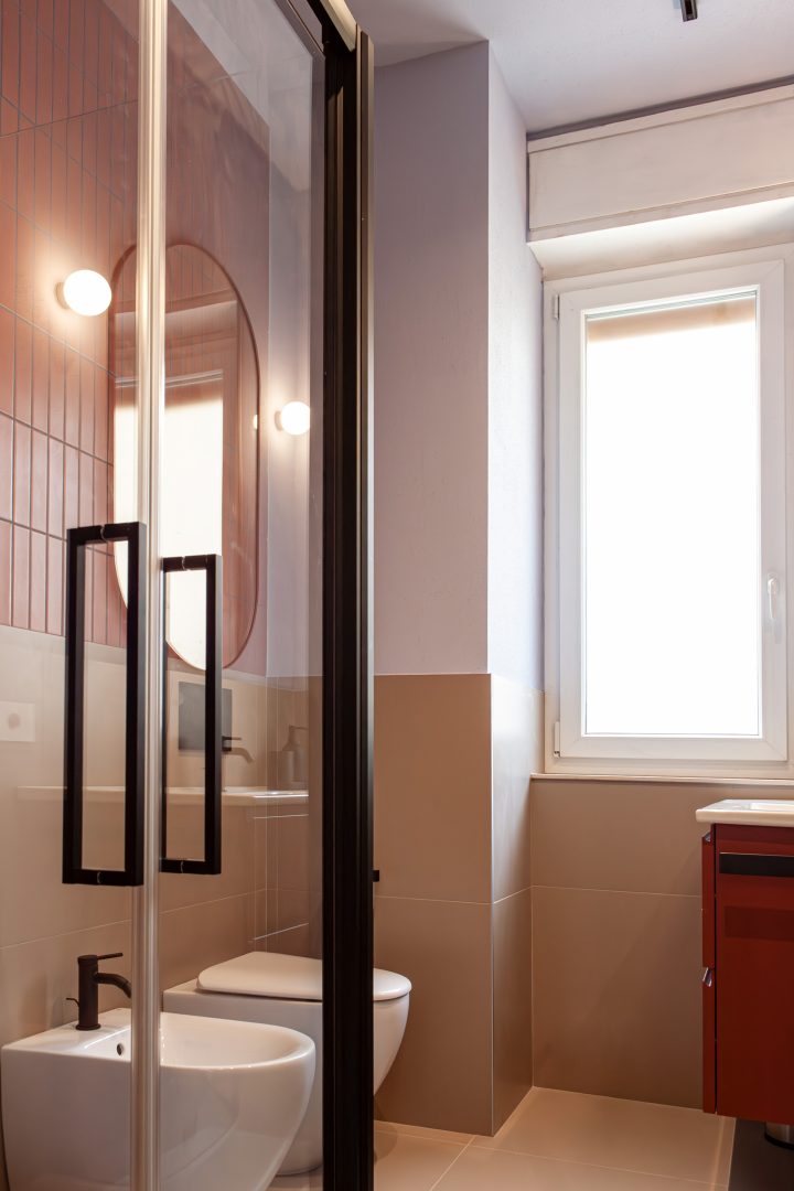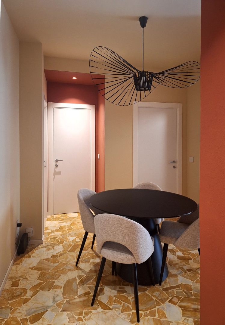 Per quanto riguarda gli ambienti abbiamo allargato il bagno principale, ricavando anche un antibagno per la lavatrice, e aperto la cucina sul disimpegno tramite un arco. Il disimpegno così è diventato parte della zona giorno come saletta comune.
