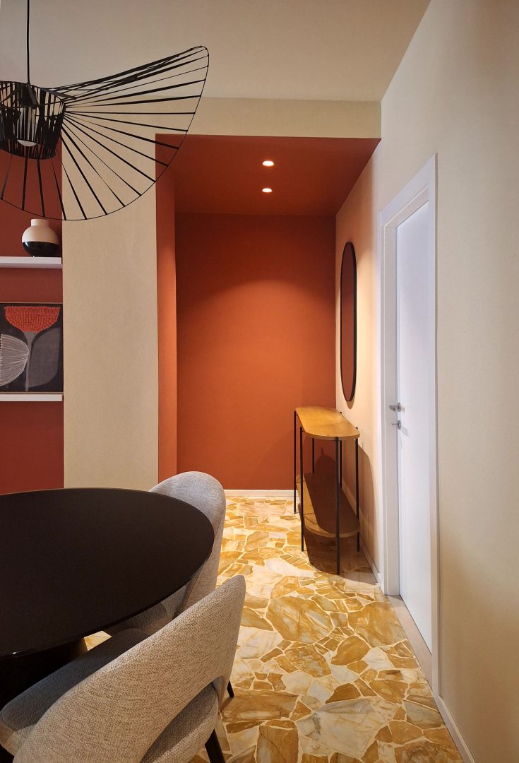 Ruolo importante hanno avuto i colori, che caratterizzano l'appartamento e distinguono le tre stanze.