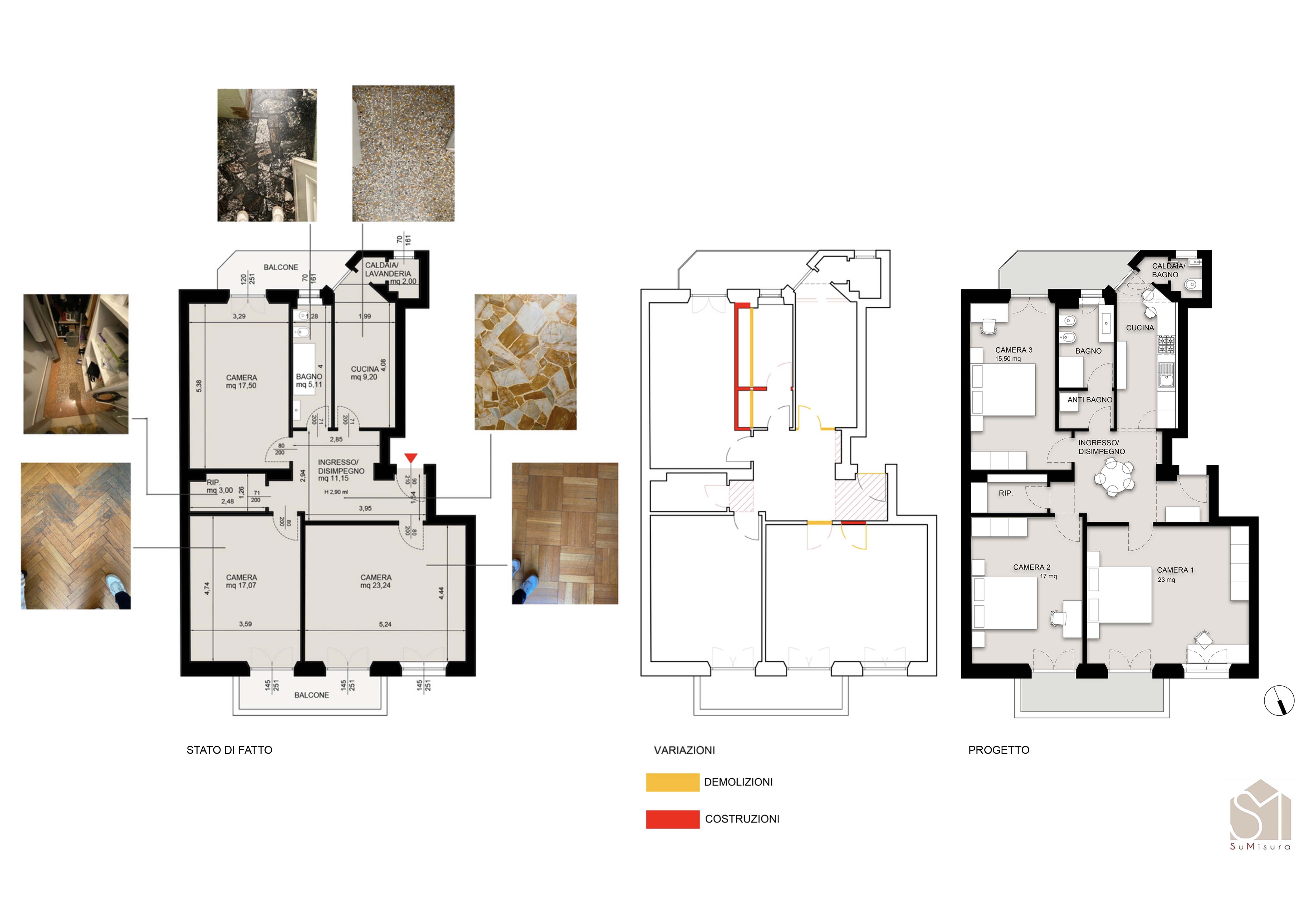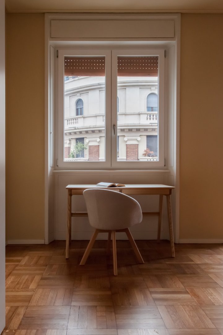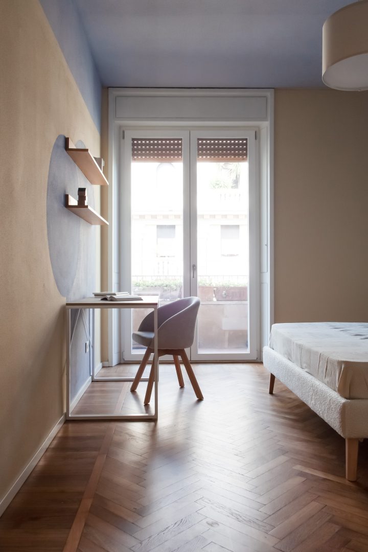 Manutenzione straordinaria e arredo, appartamento in affitto a stanze, Milano Un appartamento anni '50, nel cuore di Città Studi a Milano, affittato per anni senza mai un vero restyling. Siamo partite dall'esistente: pavimenti tipicamente anni '50, in parte in parquet e in parte in marmo che abbiamo deciso di mantenere, non dovendo stravolgere completamente la distribuzione.